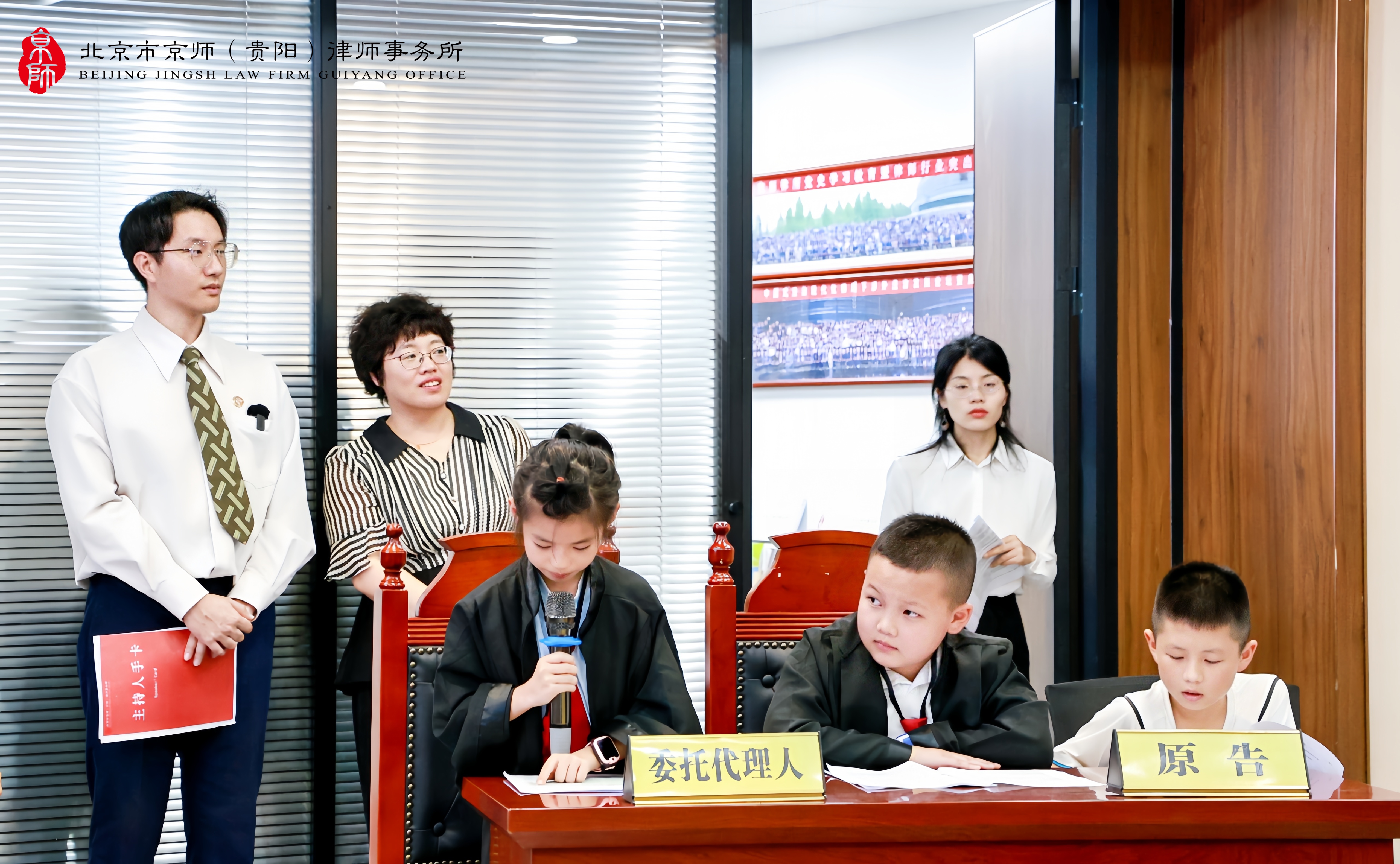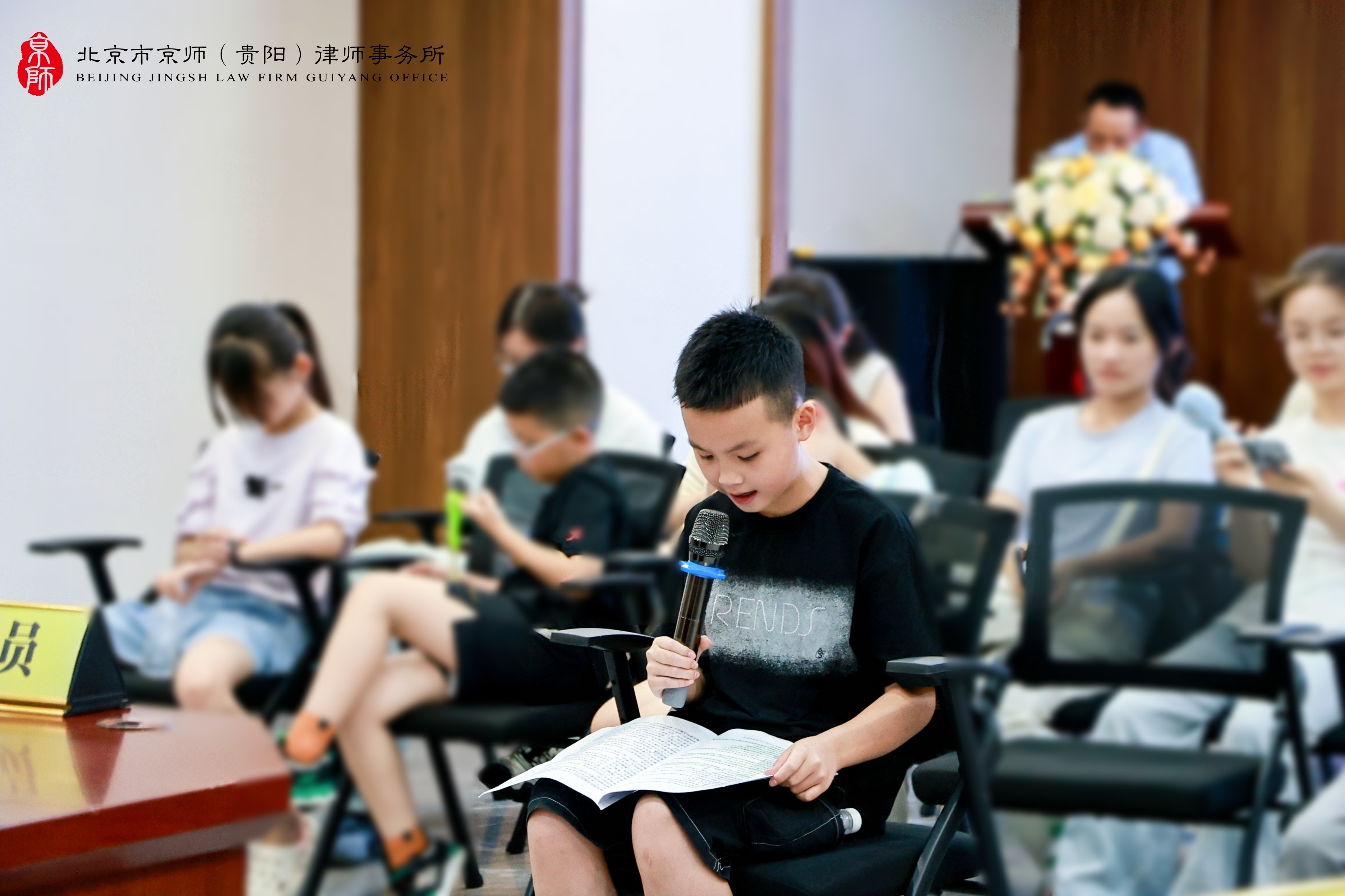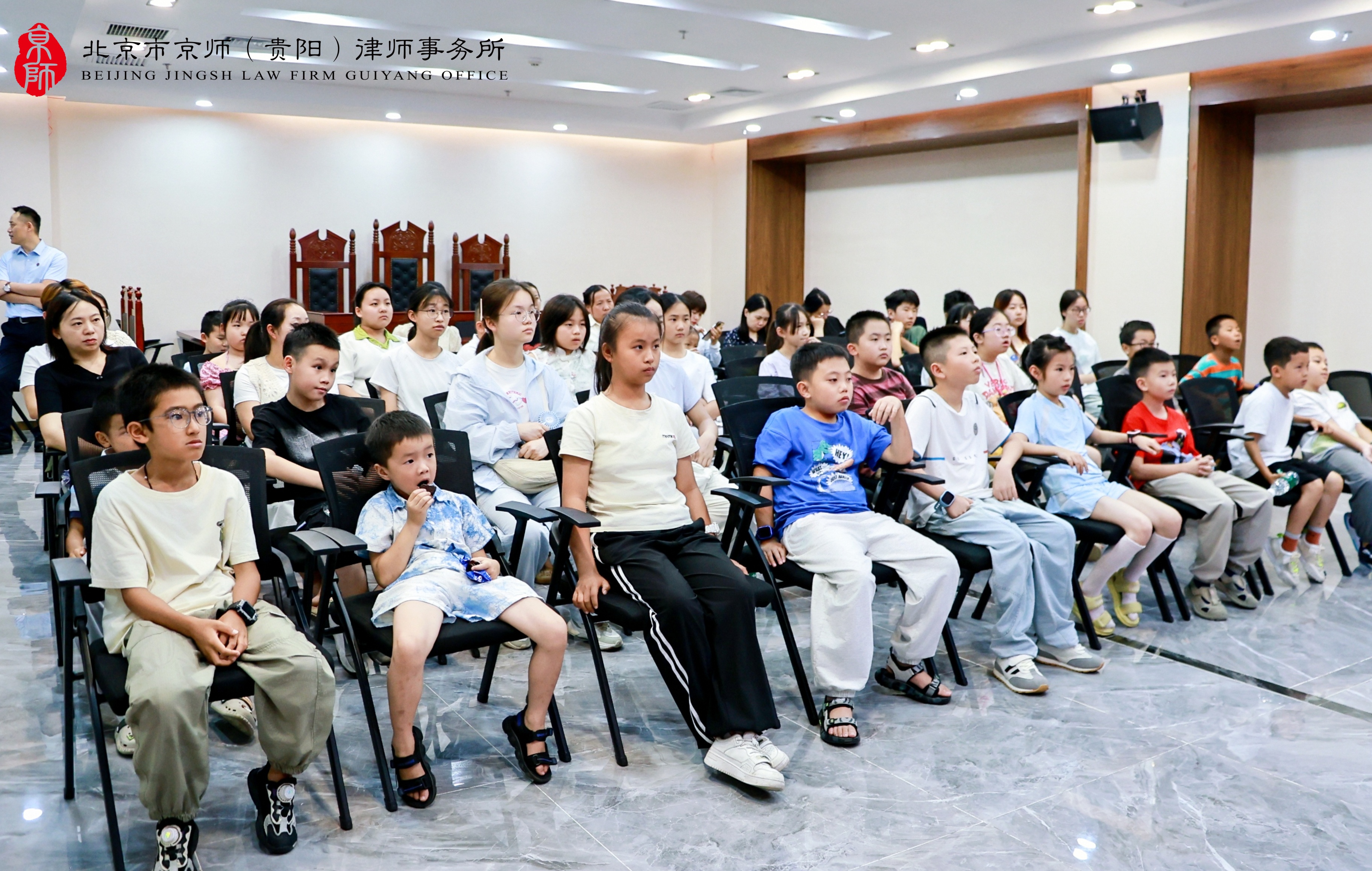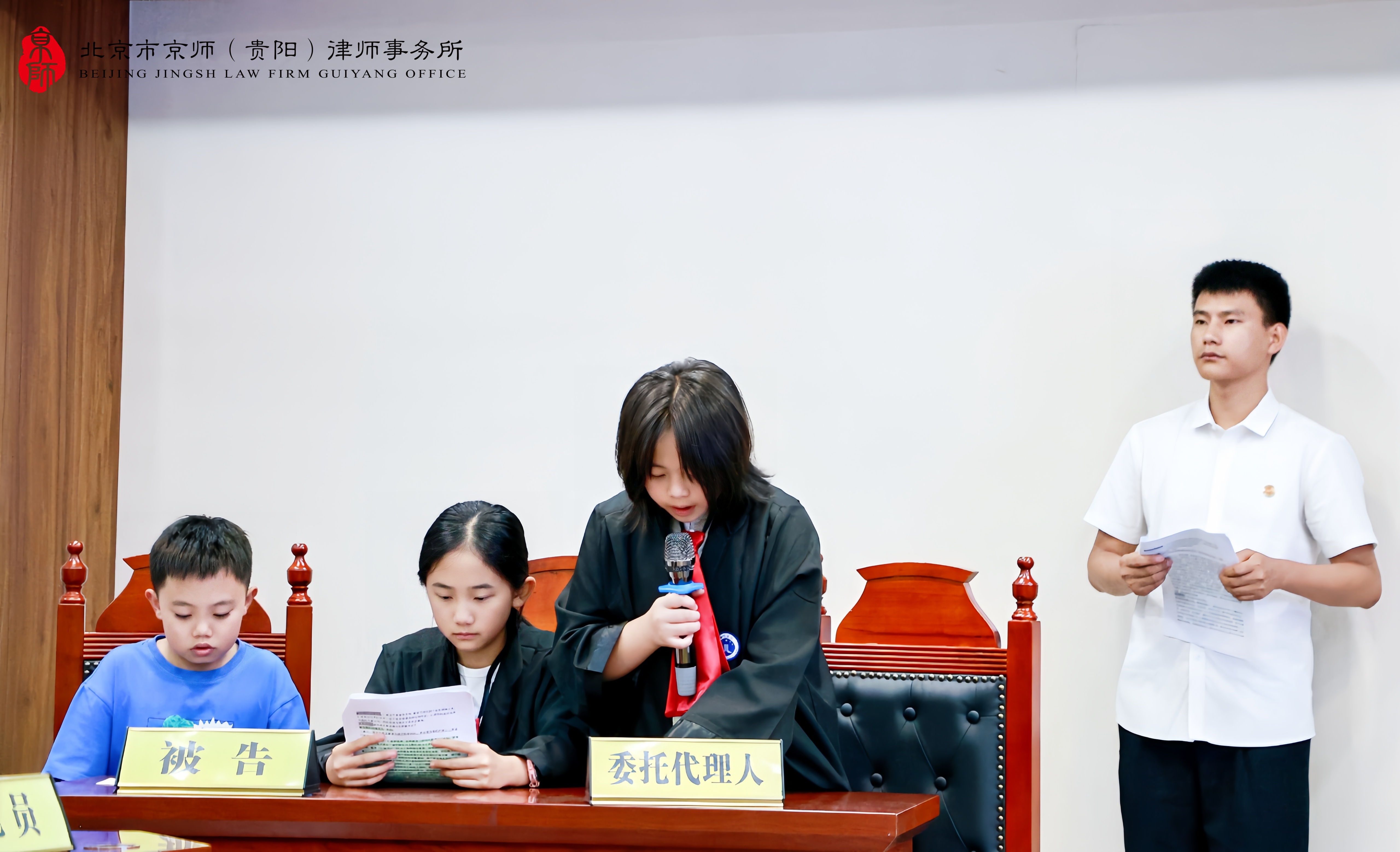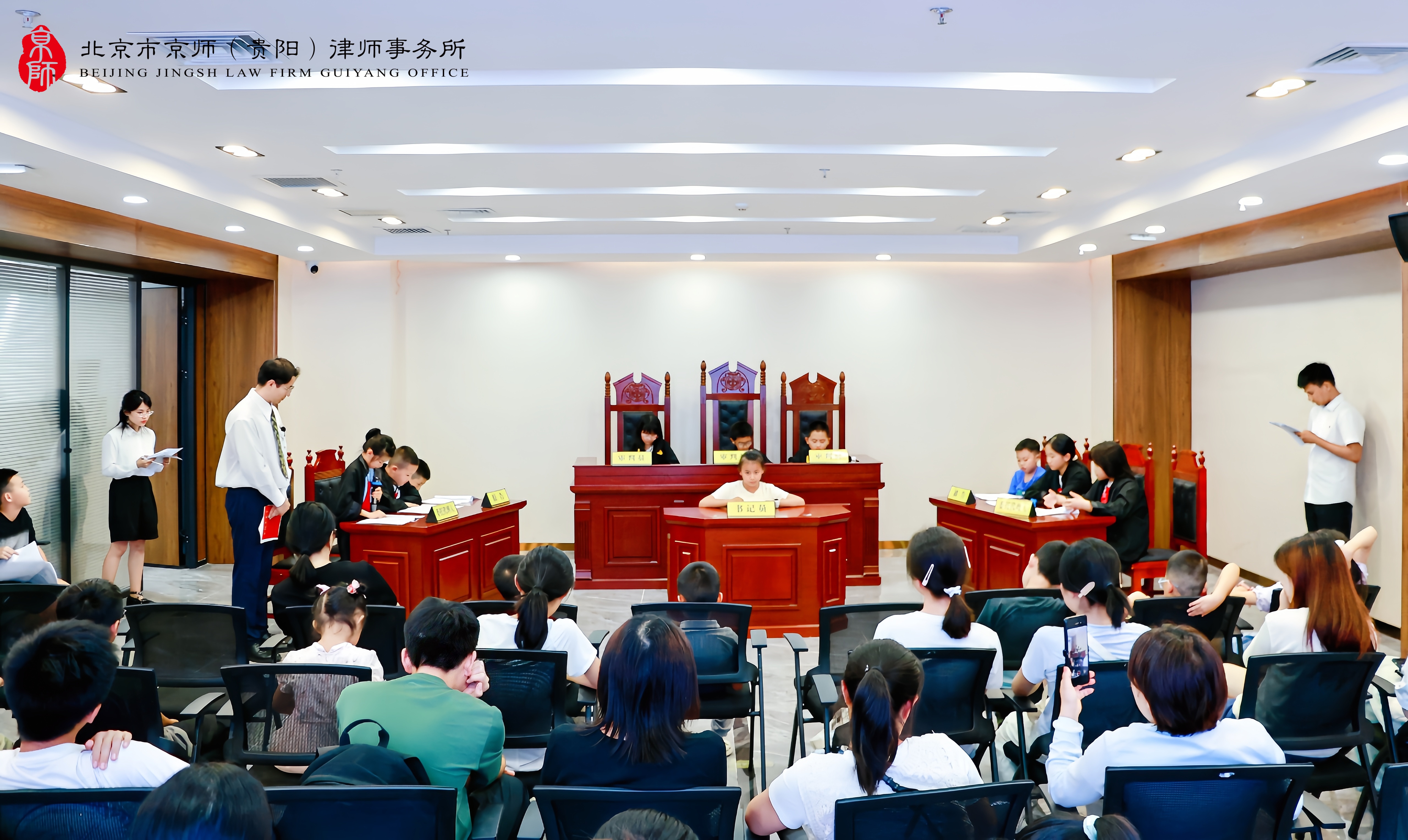 为深化未成年人思想道德教育,强化青少年的法治观念和自我保护能力,8月13日下午,由贵阳市精神文明建设办公室、贵阳市司法局、贵阳市妇女联合会指导,观山湖区新时代文明实践中心、观山湖区委政法委、观山湖区人民法院、观山湖区人民检察院、观山湖区司法局、共青团观山湖区委、观山湖区妇联主办,云潭街道新时代文明实践所协办,北京市京师(贵阳)律师事务所承办的“公共场所意外受伤怎么办·少年模拟法庭”——第三十期“护蕾向阳”新时代文明实践活动在京师贵阳律所多功能厅圆满举办,吸引了众多青少年学生及其家长的热情参与。