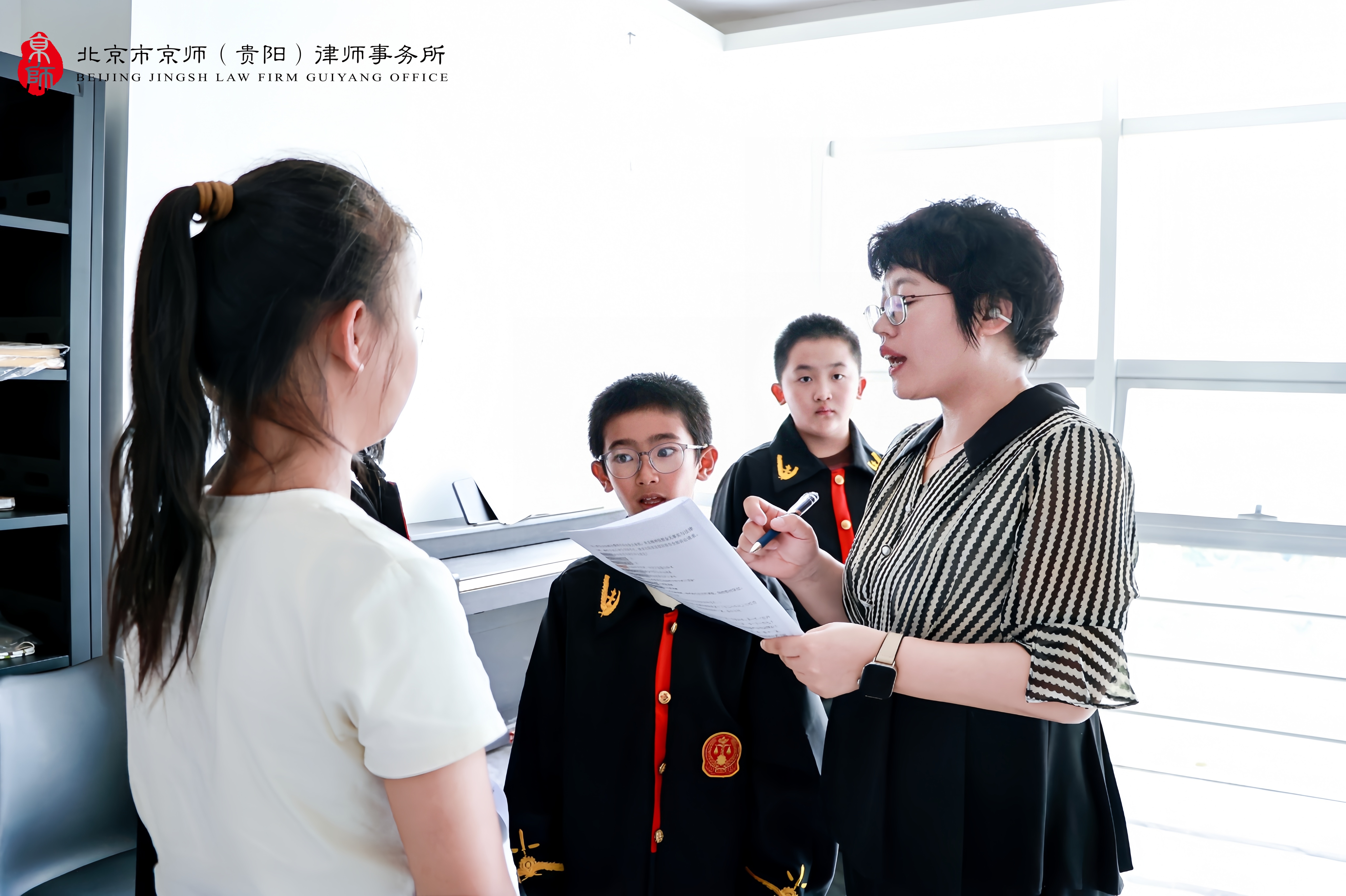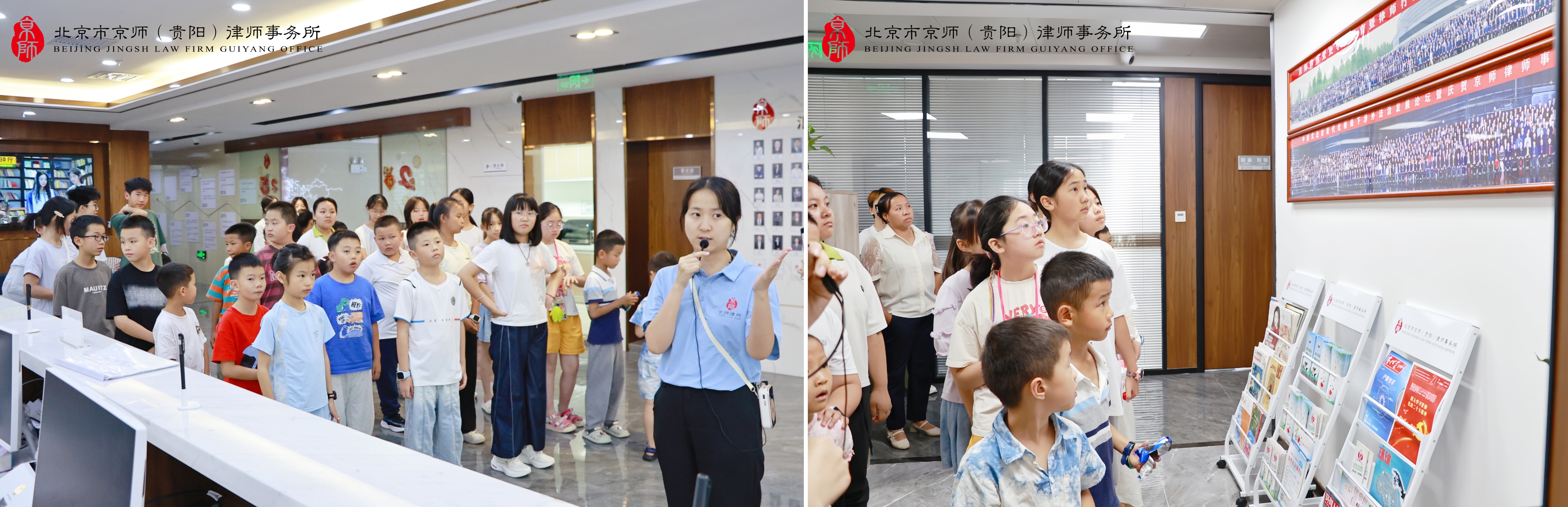 本次活动由京师贵阳律所文化品牌委员会全程负责。活动伊始,参与活动的学生及家长们有序地参观了律所的办公区域及文化展示,近距离感受了律师日常工作的严谨氛围。