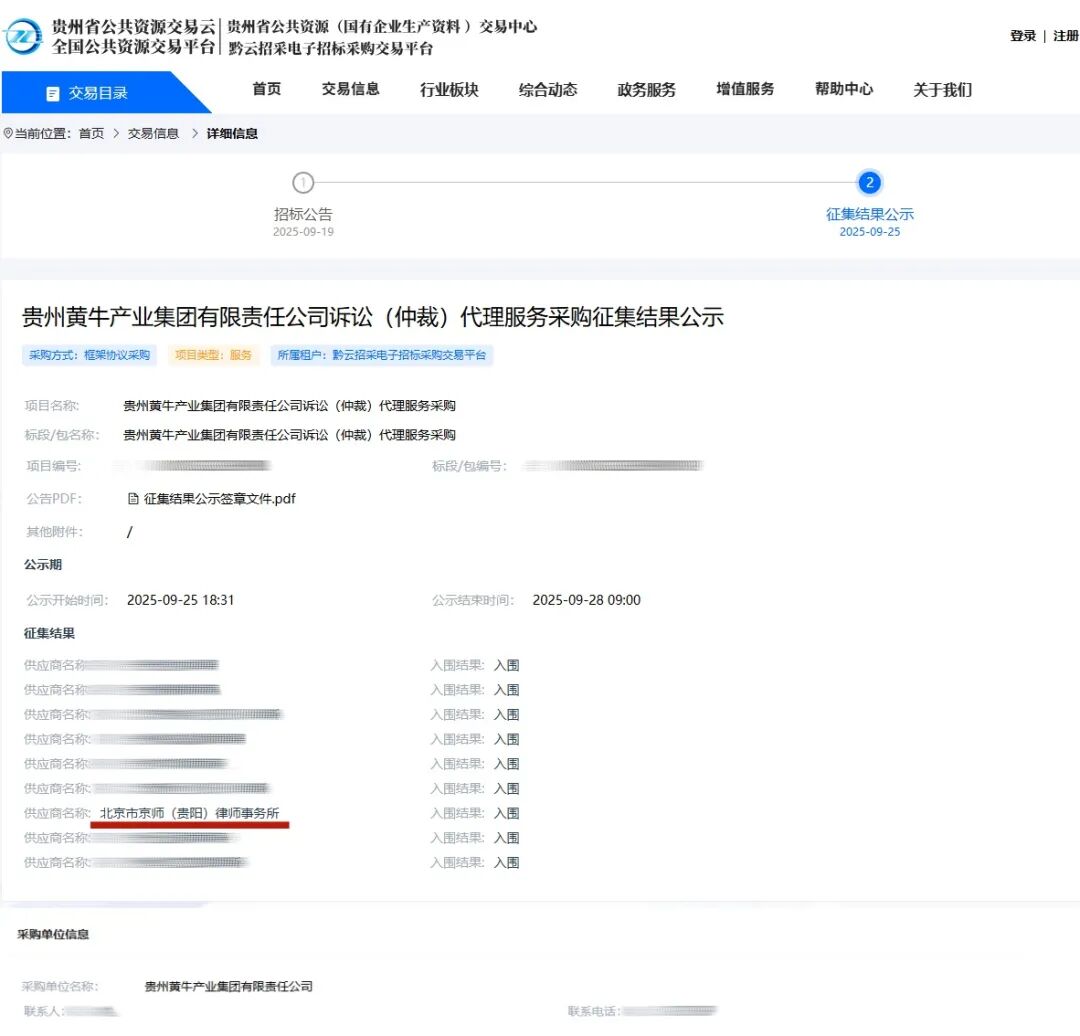 律所喜报 | 京师贵阳律所中标贵州黄牛产业集团有限责任公司诉讼(仲裁)代理服务采购项目